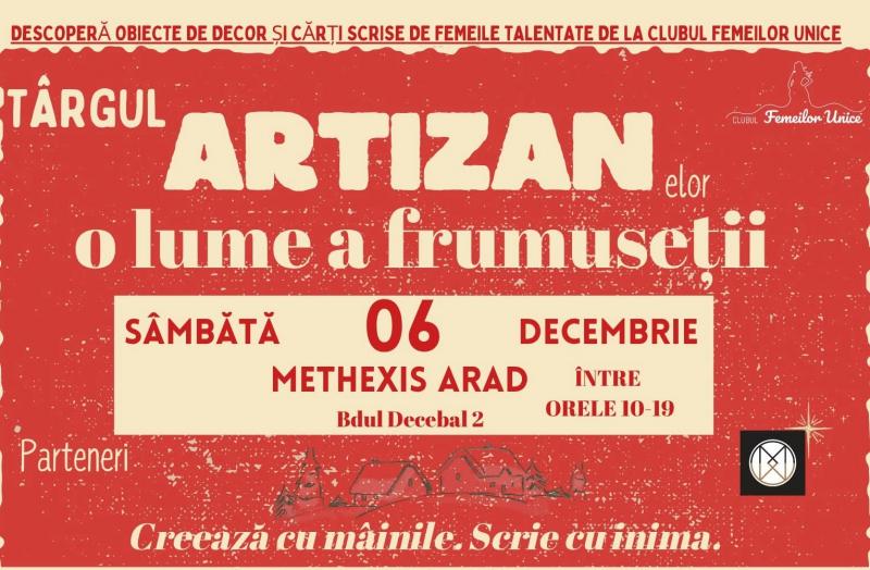 Clubul Femeilor Unice, organizaÈ›ie non-profit dedicată susÈ›inerii È™i promovării femeilor creative È™i talentate, invită publicul arădean la Târgul ARTIZANelor – ediÈ›ia de iarnă.